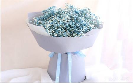 6朵粉玫瑰粉色蓝色满天星混搭花束,如图制作