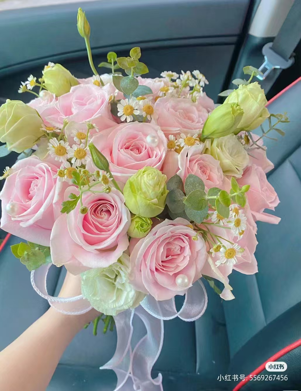上海花千坊爱上海19支红玫瑰2支白百合配白满天星花束,如图 |