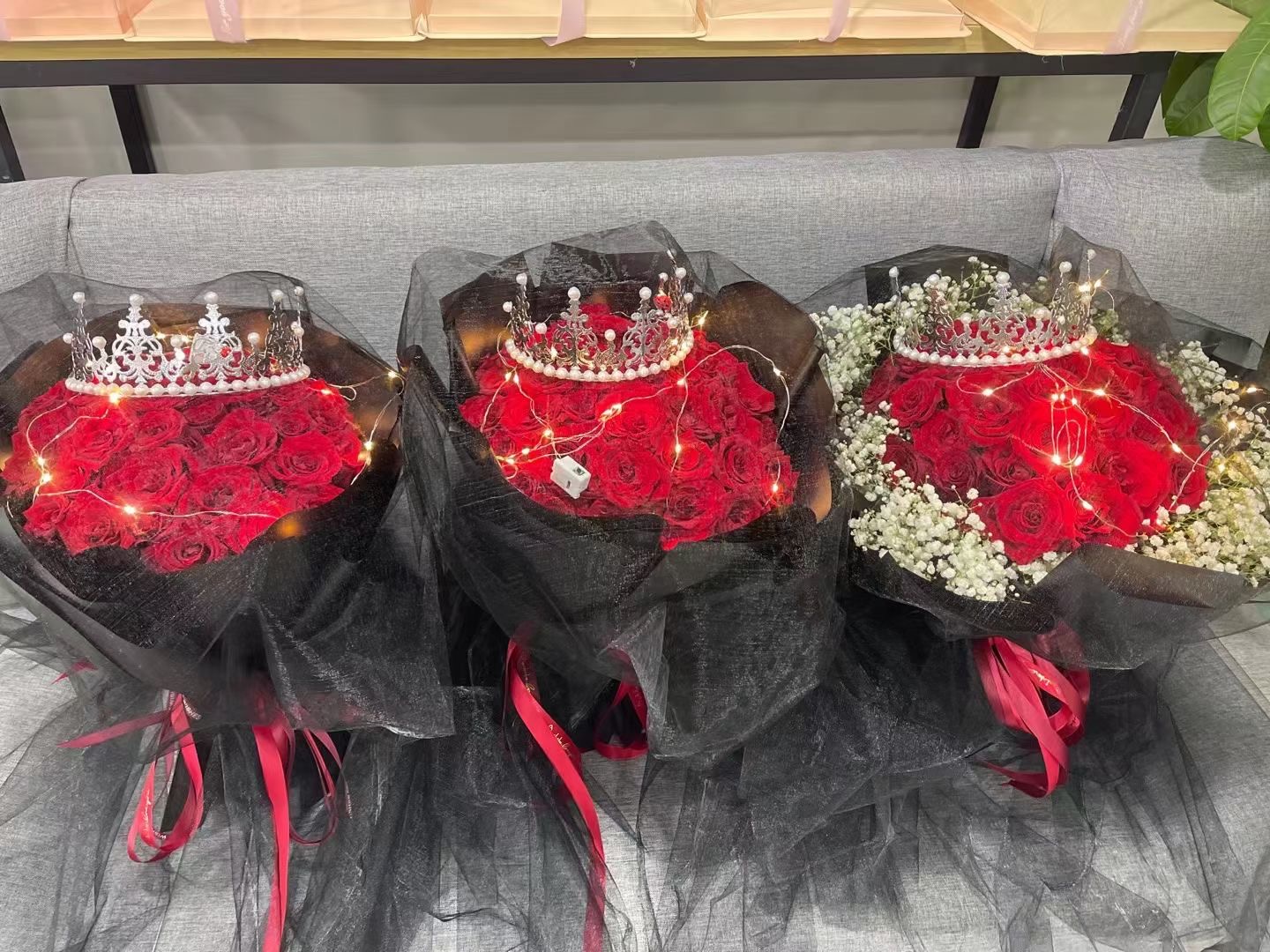 3朵粉百合+9朵粉康乃馨+6朵粉玫瑰混搭花束如图
