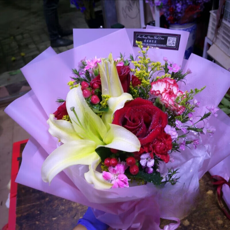 上海花千坊爱上海19朵粉康乃馨加玫瑰大气花束 按图 |