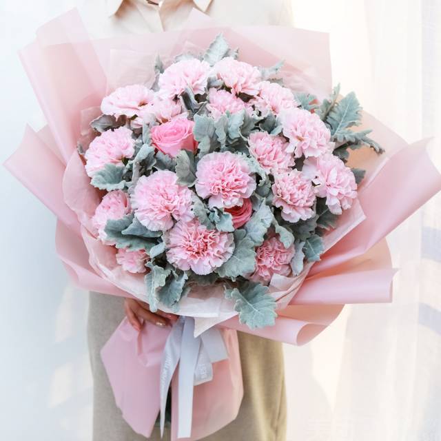 上海花千坊爱上海19朵粉康乃馨2朵粉玫瑰 |