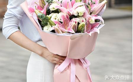 9枝多头粉百合花束(18朵以上),如图制作 |