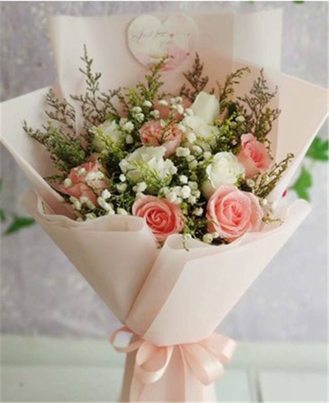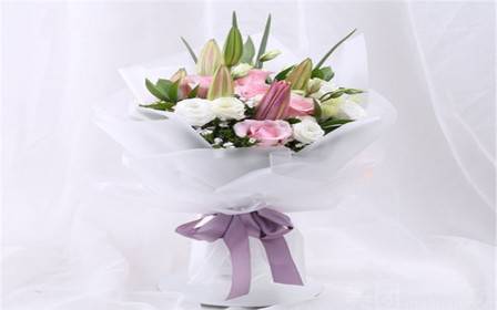 6支粉玫瑰4支桔梗2支百合,如图包装 |
