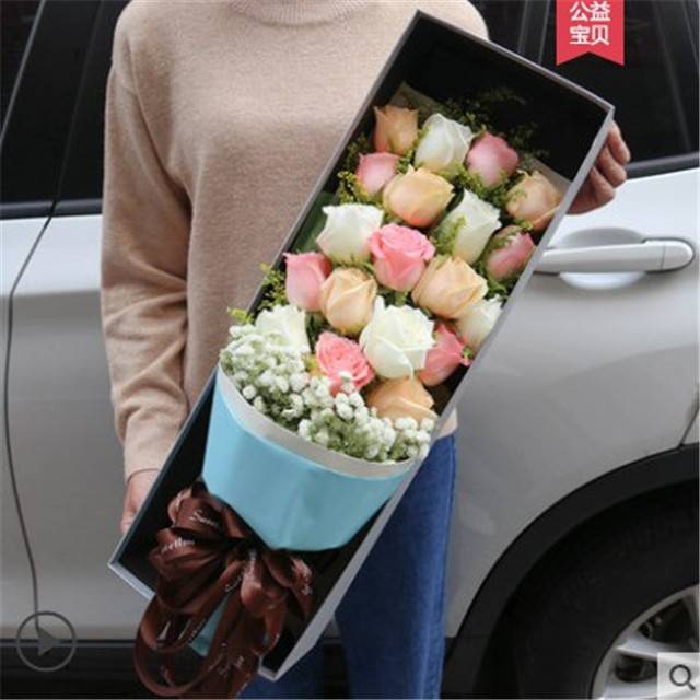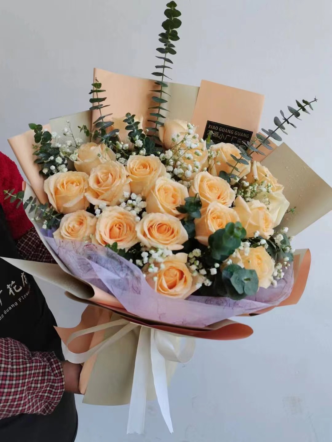 11朵代安娜粉玫加一支多头粉百合花束 |