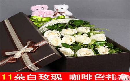 上海花千坊爱上海11支白玫瑰2小熊礼盒 装,如图 |