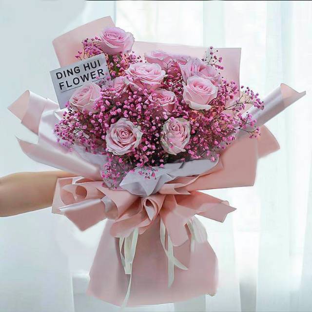 上海花千坊爱上海11枝粉玫瑰满天星花束 |