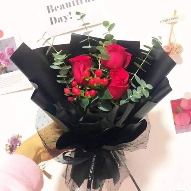 19朵红玫瑰2支粉百合混搭礼物韩式花束 |