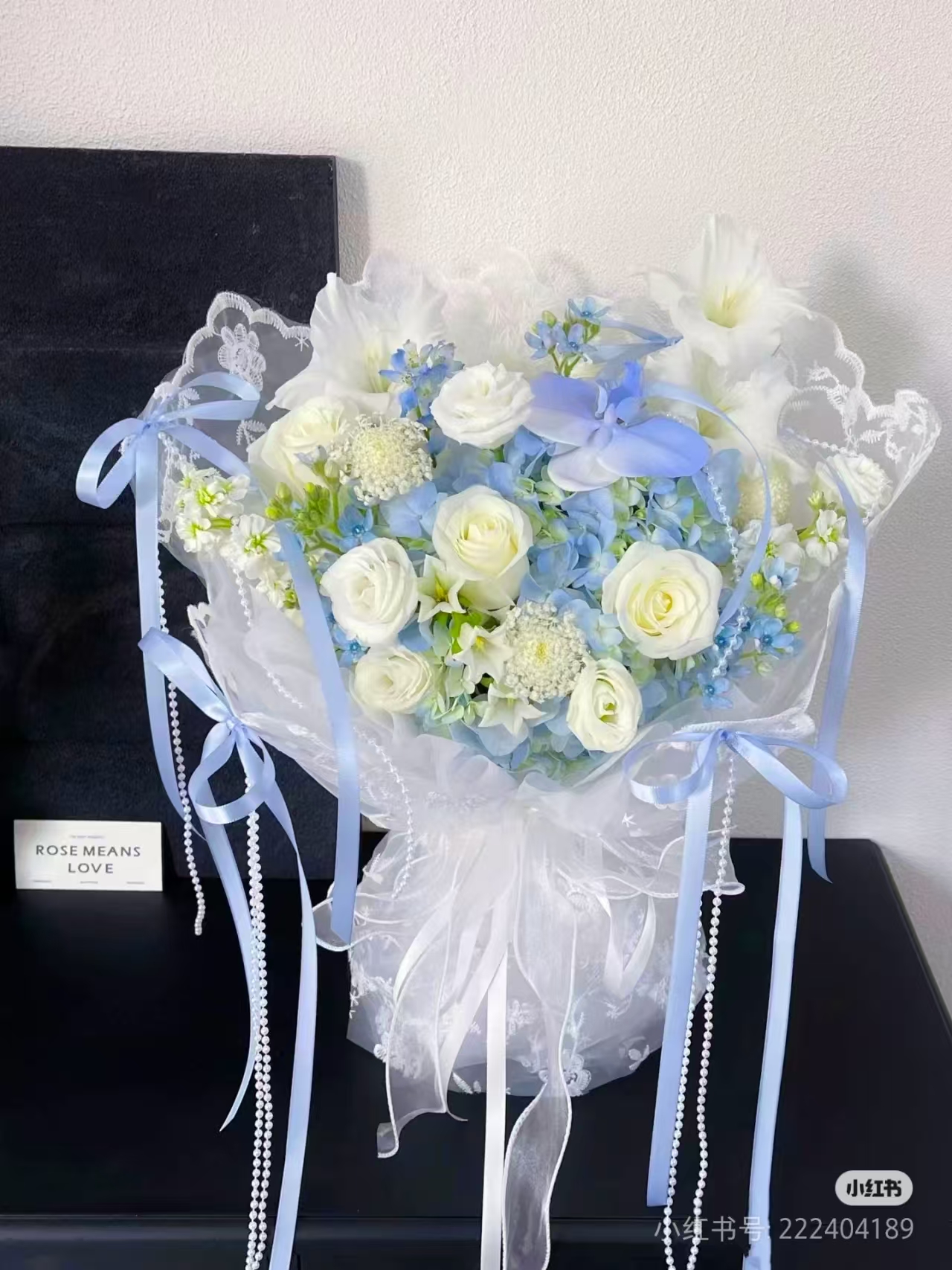上海花千坊爱上海19支粉玫瑰配白桔梗花束,如图 |