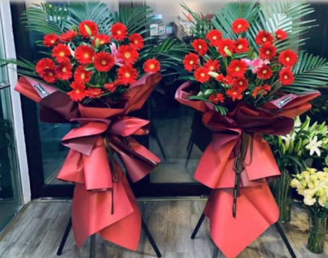 开业花篮1对 (20朵扶郎+2朵粉色百合花篮 ) 按图制作,花材新鲜 |
