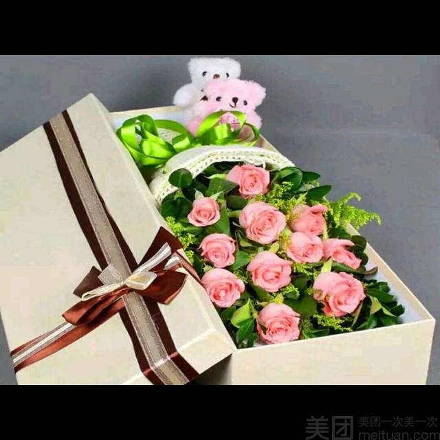 上海花千坊爱上海11朵粉玫瑰2小熊礼盒如图 |