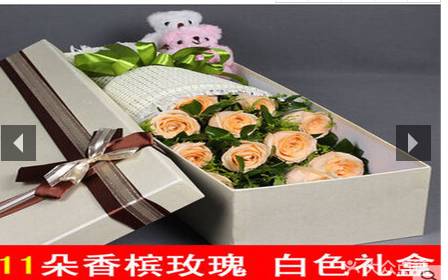 上海花千坊爱上海11朵香槟玫瑰2小熊礼盒装 如图 |