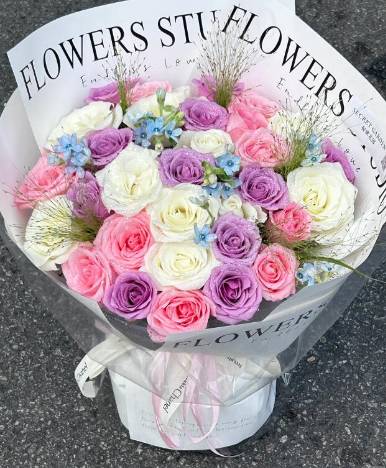 33朵白玫瑰 紫玫瑰 戴安娜混搭花束 按图包装款式做 |