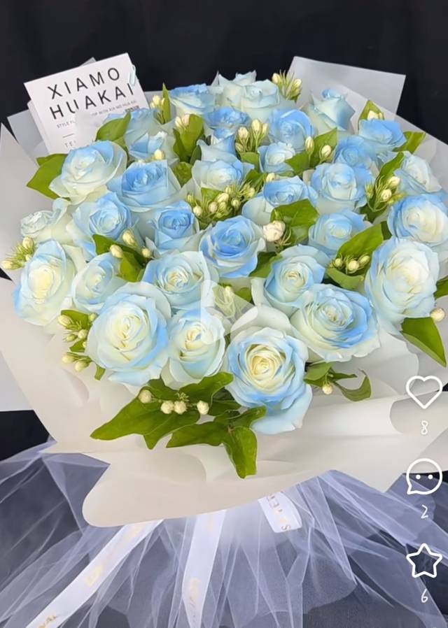 33支碎冰蓝配茉莉花一束+11支香槟玫瑰3支向日葵橙芭芘花束(共2束) |