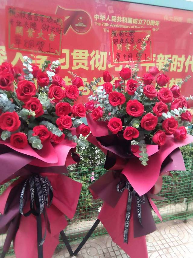 红玫瑰开业花篮3对(每个30朵红玫瑰) |