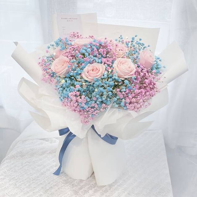 11朵粉玫瑰13朵粉百合花束,如图包 |