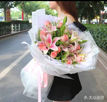 上海花千坊爱上海11朵粉玫瑰13朵粉百合花束 |