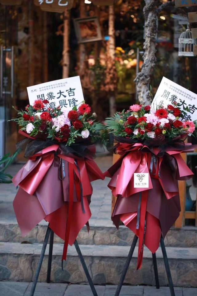 上海花千坊爱上海开业花篮2个(每个20朵红玫瑰2朵粉百合)如图 |