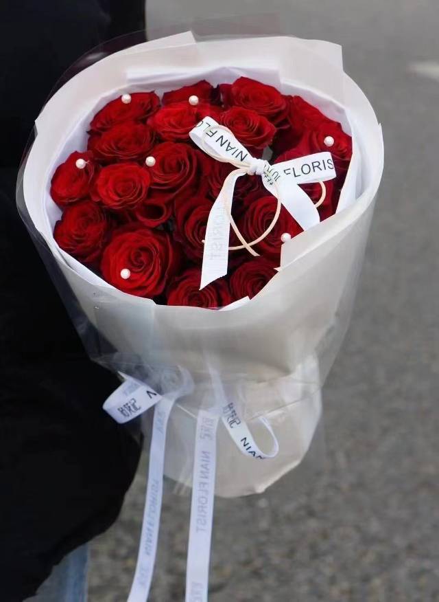 上海花千坊爱上海33朵红玫加纱鲜花束,如图包 |