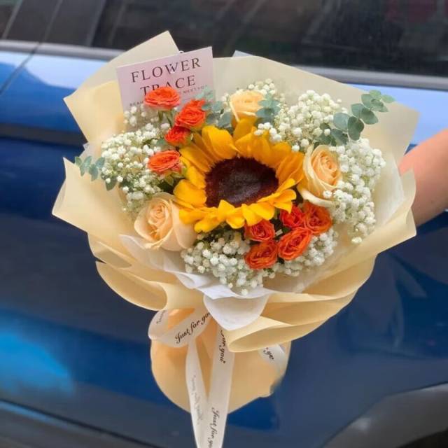 上海花千坊爱上海1支向日葵配3朵香槟玫瑰花束