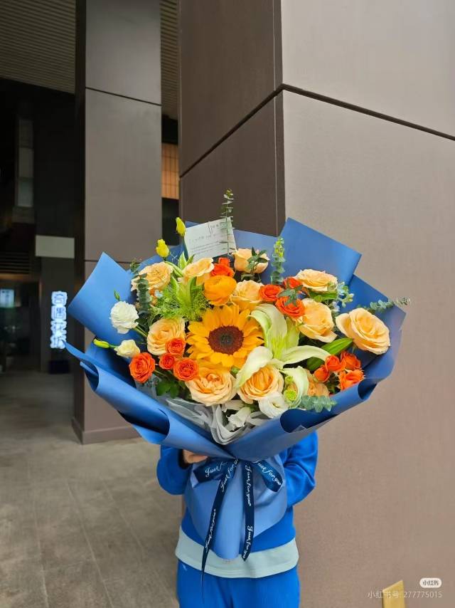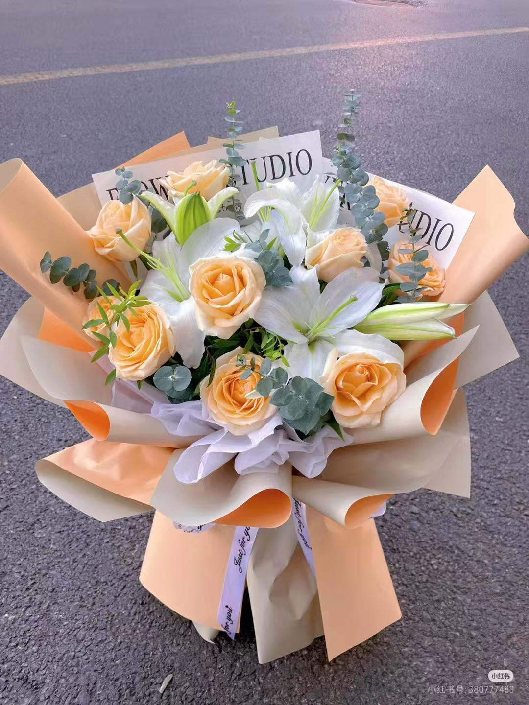 上海花千坊爱上海香槟玫瑰向日葵百合混搭花束,按图做 |
