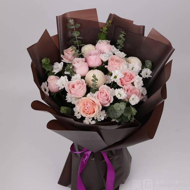 11朵粉玫瑰花束,如图包 |
