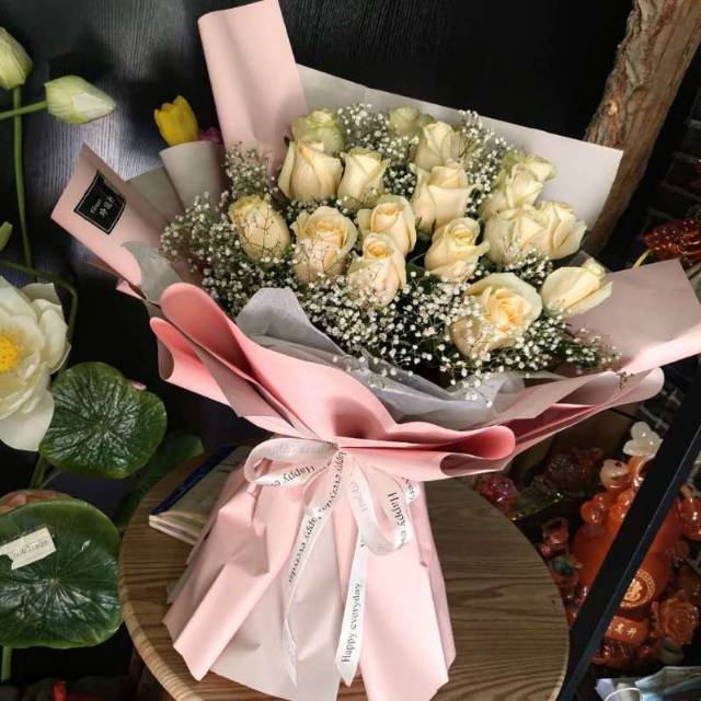 19朵香槟玫鲜花束,如图包 |