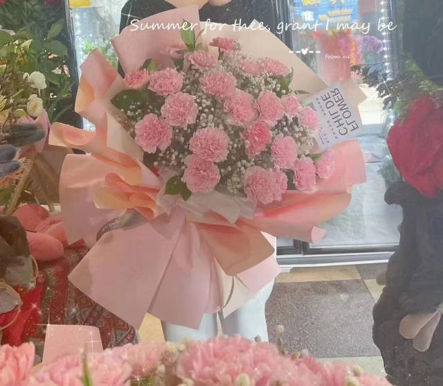 上海花千坊爱上海11朵粉色康乃馨花束 ,款式如图 |