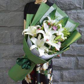 13朵白百合花束,如图包装大气好看,有卡片,按时送达。 |