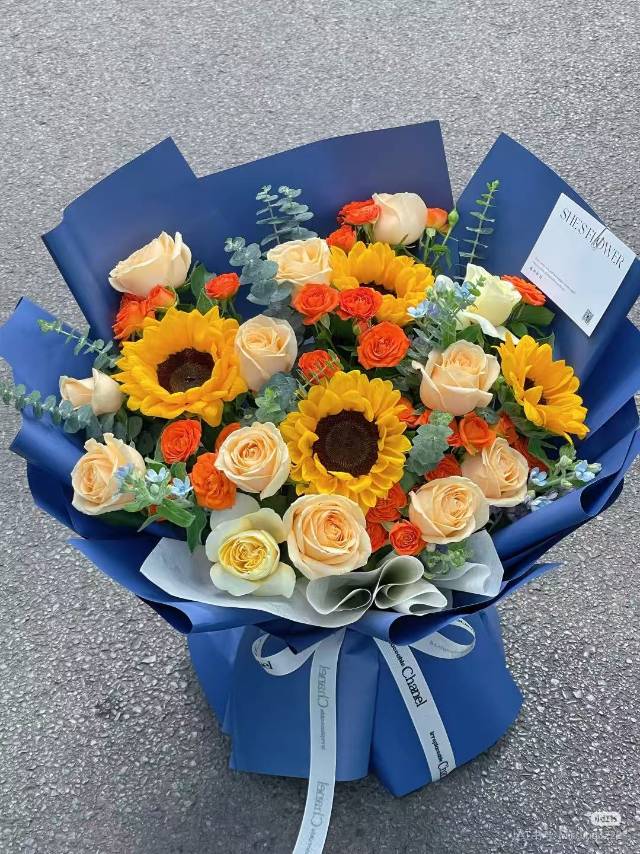 上海花千坊爱上海19朵香槟 6朵向日葵 按图包装款式做 |