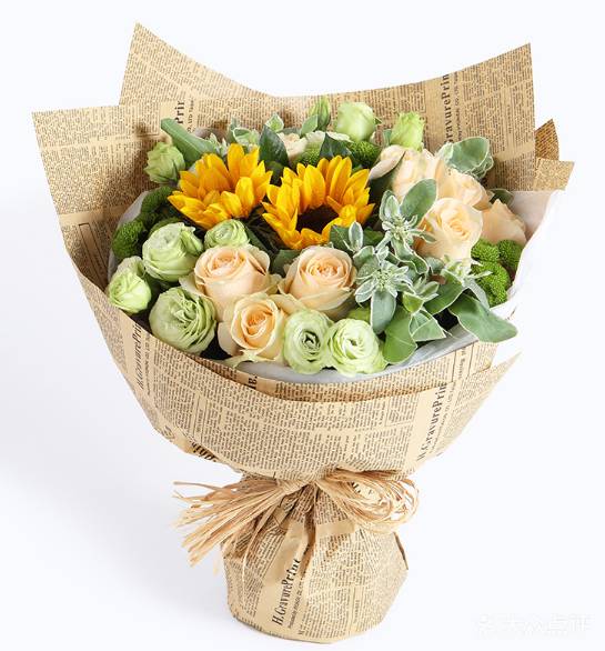 上海花千坊爱上海11朵香槟玫瑰2朵向日葵5朵绿洋桔梗混搭花束,如图包装大气好看,有卡片 ,按时送达。 |
