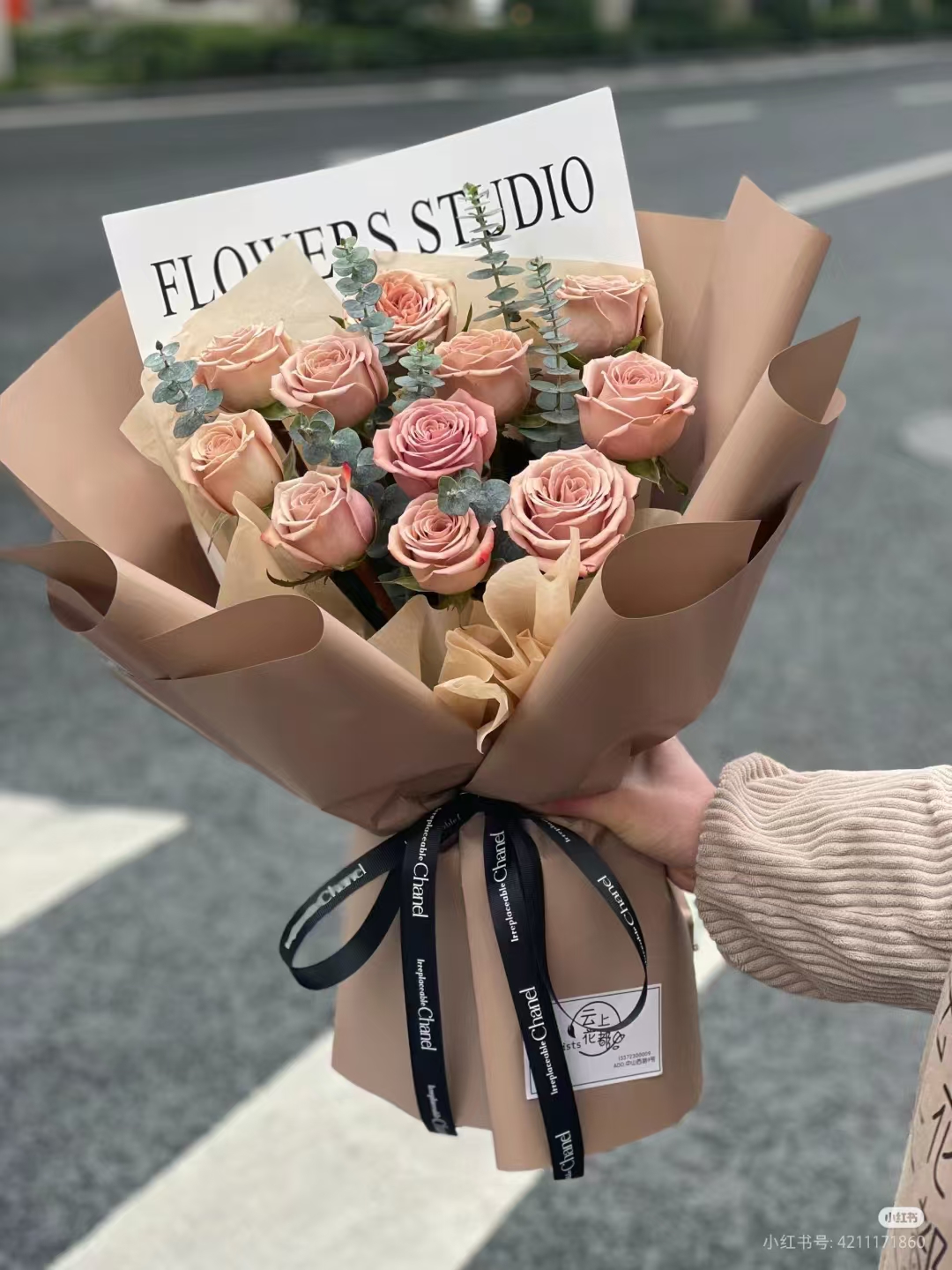 上海花千坊爱上海19支香槟玫瑰小香风款,如图