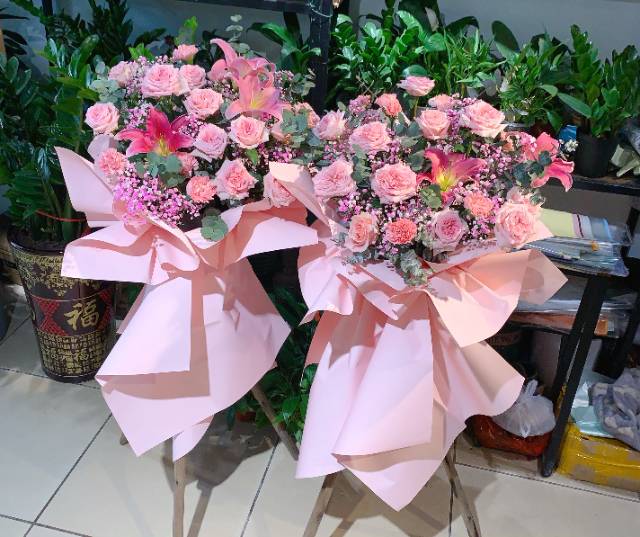 上海花千坊爱上海粉玫瑰混搭鲜花花篮一对+大麦开业花篮一对(共2对)按图做 |
