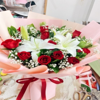 上海花千坊爱上海10朵红玫加白星鲜花礼盒 |