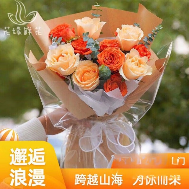 11朵粉玫加白星加彩灯鲜花束,用图二的包装纸 |