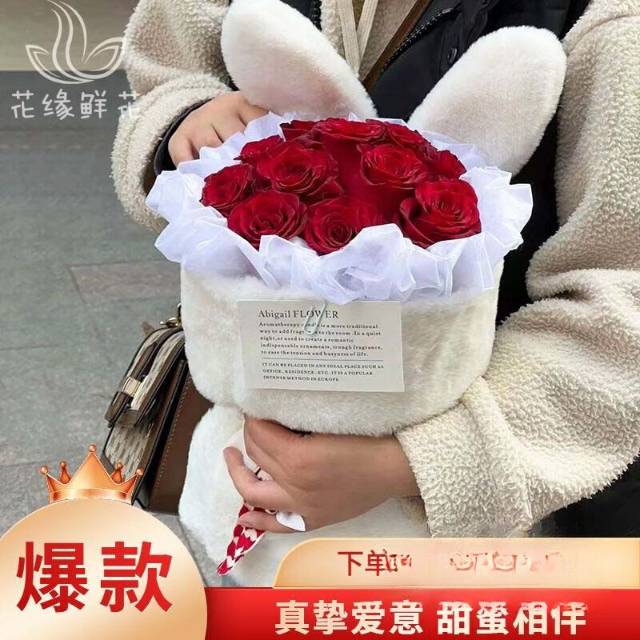 上海花千坊爱上海【兔子耳朵花束】11枝红玫瑰白兔子花束 |