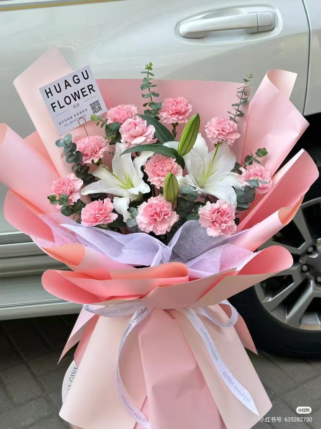 上海花千坊爱上海6朵粉色康乃馨精美鲜花束 |