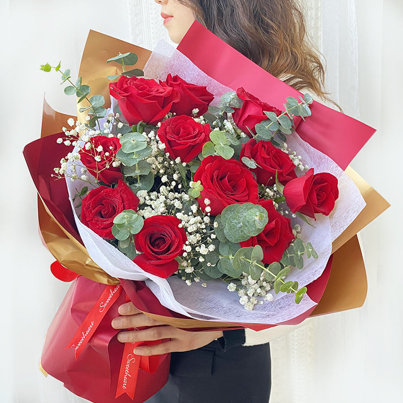 上海花千坊爱上海11枝粉色康乃馨搭配1枝粉百合花束 按图 |