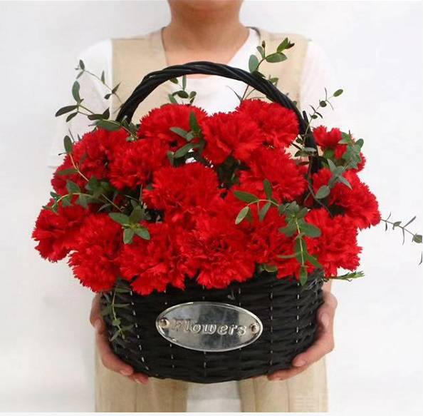 上海花千坊爱上海33朵红色康乃馨手提花篮 数量:1