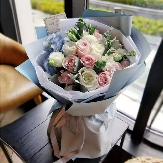 19朵戴安娜玫瑰+相思梅搭配+白色礼盒,需要插花泥,按图制作,务必保证新鲜和质量,10号下午五点前务必送达 |