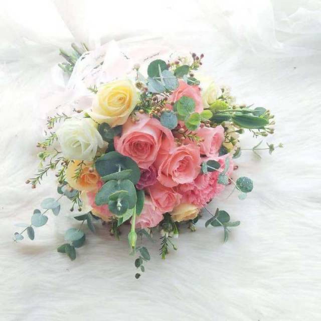 上海花千坊爱上海19枝粉玫瑰亲娘手捧花,如图包 |