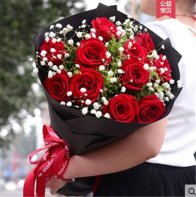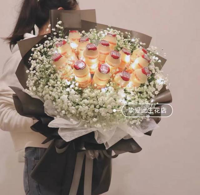 上海花千坊爱上海15支养乐多白色满天星花束,如图包 |