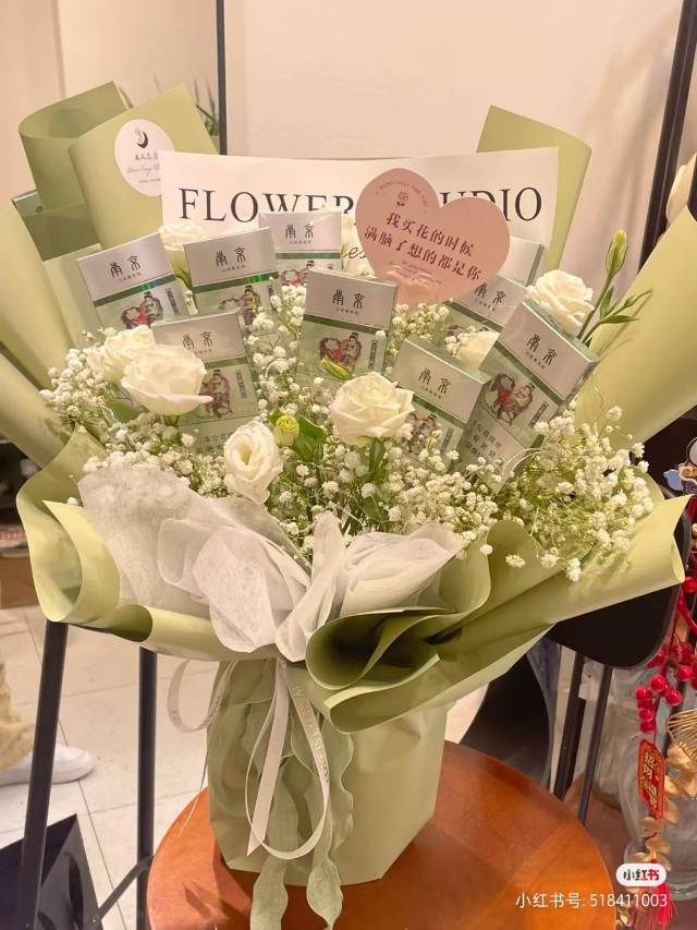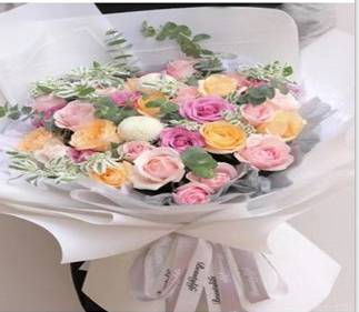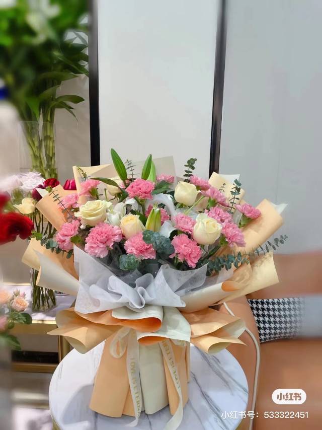 上海花千坊爱上海19朵粉康乃馨2支白百合混搭花束。如图包 |