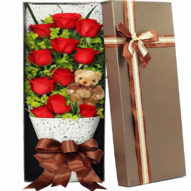 上海花千坊爱上海图1:11朵红玫瑰一小熊花束主图款 数量:1 |