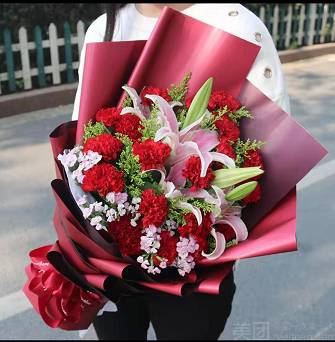 19朵红康乃馨6朵百合+2朵玫瑰 |