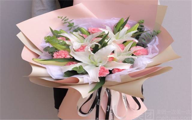 19朵康乃馨花束加3支百合花束如图 |