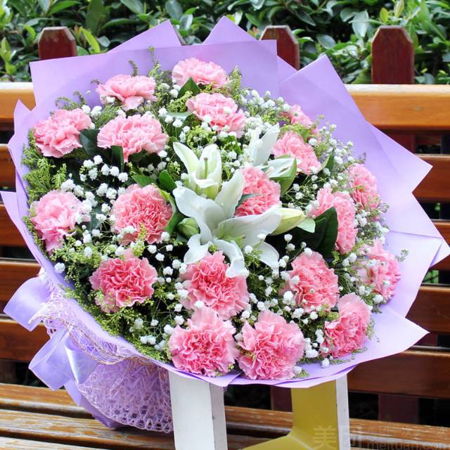 上海花千坊爱上海19朵粉康乃馨2支百合花束 |
