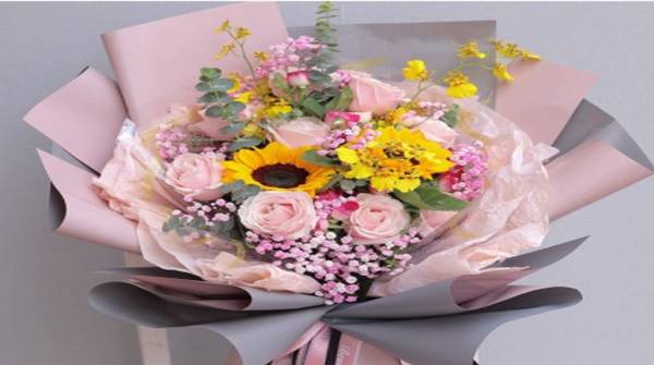 上海花千坊爱上海11朵粉玫瑰2支向日葵共事,如图制作 |