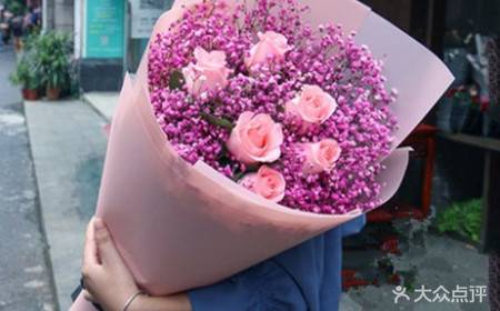 上海花千坊爱上海粉色满天星6朵粉玫花束如图,有卡片 |