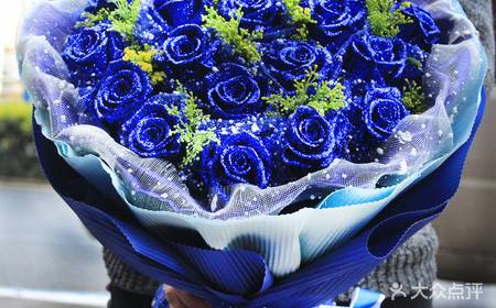 上海花千坊爱上海33支蓝色妖姬花束,如图制作 |