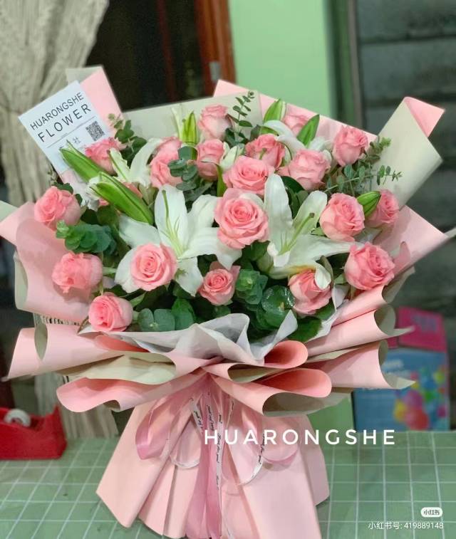 6支粉玫瑰蓝粉色满天星混搭花束,花材新鲜,如图,价格保密,谢谢 |